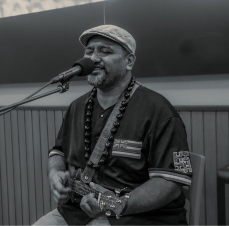 We are pleased to welcome international recording artist Kuhio Travis, who is a specialist with the ukulele, and a talented one man show! His tiny one-of-a-kind ‘ukulele is a powerhouse instrument, custom built by a civil engineer in Washington who makes experimental instruments as a hobby. It’s a solid body electric ‘ukulele with built-in controls for on-board distortion effects. Kuhio really rips on his ‘ukulele. This is a free-to-the-public event, and donations are encouraged. 7:00-9:00 PM, All Ages performance.
